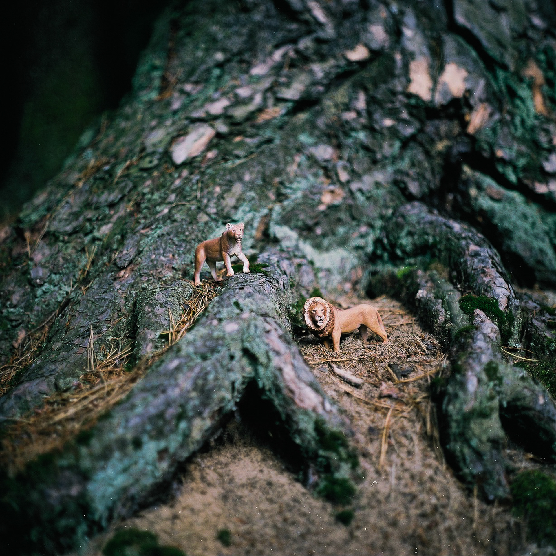 Fotografie zabawek/zwierzątek wykonane podczas wędrówek z moim synem. Wykonane w roku 2012 średnioformatowym aparatem Kiev 88 oraz małoobrazkowym Nikonem F801 na filmie Kodak Portra 400